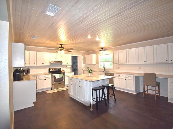 - Walk-In Closet(s), Built-in Features, Walk-in Shower, Breakfast Bar, Stone Counters, Pantry, Sheet Rock, Wood Ceiling, All Bedrooms Down