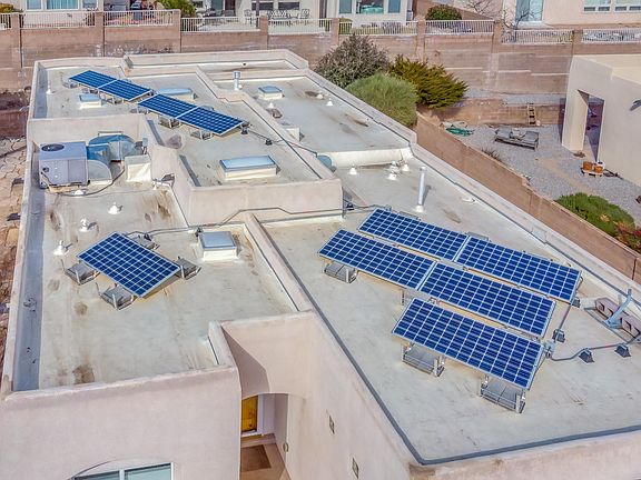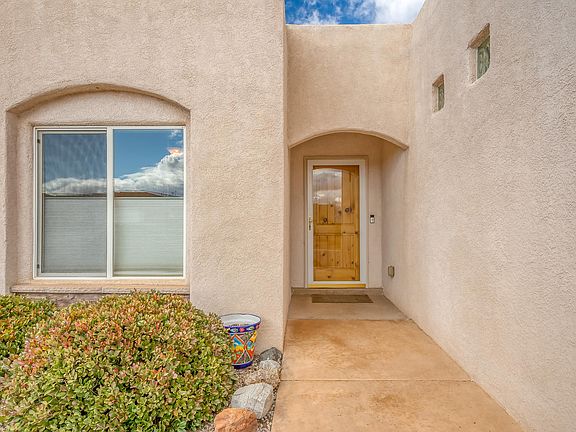 A real cream puff! Ideal location in Trinity Estates. Minutes from Intel, Cottonwood mall, Rust hospital, restaurants and more! Beautiful single story custom home. $17,000 membrane roof! Owned solar!! Contemporary southwest style with wood beams, kiva fireplace, skylights, skip trowel finish, lighted niches, stacked stone accents, open floor plan. Spacious kitchen features granite counters, island, bar top, hickory cabinets, refrigerator, smooth top electric range, dishwasher, GE microwave and custom faucet. Owners suite is lovely and bath offers granite counter, soaking tub, separate shower and 2 closets! Laundry room full of cabinets, folding counter and also has a sink. Backyard is wonderful with covered patio and portal, water feature, flagstone and mature plants. A must see home!