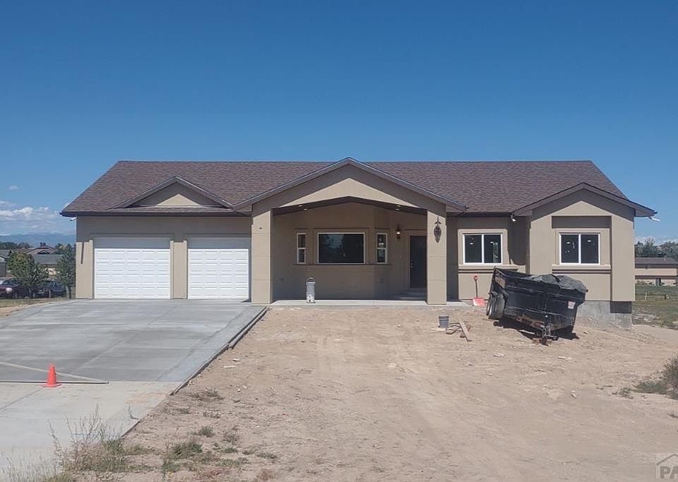 Fantastic new Pueblo West acreage home on a paved road! This thoughtfully designed property offers a unique floor plan with incredible features inside and out. Step into the open-concept main level with soaring vaulted ceilings, perfect for entertaining. The living room boasts an electric fireplace, while the expansive kitchen shines with granite countertops throughout, a large island with a second sink and bar seating, soft-close cabinets, and upgraded light fixtures. The home includes 3 spacious bedrooms and 2 bathrooms. The primary suite is a true retreat with lake views, a massive walk-in closet, and a luxurious ensuite featuring a huge walk-in shower and freestanding soaking tub. The laundry/mud room offers convenient dual entry doors. The lower level provides a blank slate in the unfinished basement—ideal for future customization. Outdoor living is equally impressive with stamped concrete accents, covered patios in both the front and back, and a massive rear deck to relax and soak in the breathtaking mountain views. With room to build a shop in the back, this property combines flexibility, style, and functionality. Schedule a showing today!