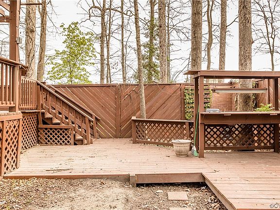 This 2 story Colonial is situated in a cul-de-sac and features a large eat in kitchen with walk in pantry, formal dining room and spacious living room with wood burning fireplace. The first floor also features a half bath and French doors to the oversized rear deck from the living room with additional access from the kitchen. Upstairs you will find a primary bedroom with ensuite bath and walk in closet, as well as 2 additional bedrooms, one with another walk in closet and all featuring hardwood floors. There is an additional full bath in the hallway upstairs. The back yard is made for entertaining and relaxing. Multiple level deck, patio with fire-pit and tiki bar for your enjoyment. There is an attached storage shed for your gardening and yard work tools. This home is waiting for you to move in and enjoy Brandermill living. MOTIVATED SELLER SAYS BRING ALL OFFERS.