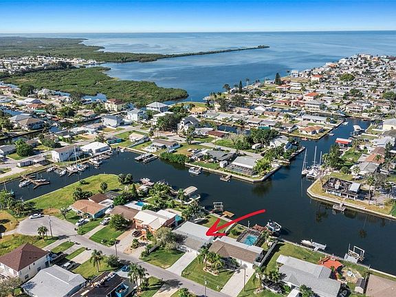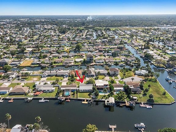Newly Remodeled 4 Bedroom, 3 Bath Waterfront Home. Located on an expansive canal/lagoon for easy boat dockage and just minutes from the Gulf of Mexico. This virtually new home offers an open floor plan with a large kitchen/dining/living/family room combination. The conveniently located kitchen features soft close solid wood cabinets, quartz countertops, stainless steel appliances and breakfast bar. The recently added rear bedrooms both with private baths and family room all have large glass sliding doors providing beautiful water views and access to the spacious fenced backyard area where covered dining, entertaining, barbecuing or just relaxing can be enjoyed. There is 60 feet of concrete seawall along with floating dock and 8,000 Lb boat lift to accommodate your boating needs with no bridges or tide restrictions for most boats. Home also features New HVAC, New impact resistant hurricane windows, New luxury vinyl flooring throughout, New tankless water heater, New electric panel, New garage door, New private outdoor shower...Hudson Beach is just a short golfcart or boat ride away and offers great restaurants, entertainment, 4 marinas, boat rentals, charter fishing, public boat ramp and a beach area for swimming...Nearby Sunwest Park with over a mile of Clearwater Beach quality sand, is a beautiful County Park where swimming, biking, walking, wakeboarding, beach volleyball, splash pad biking can be enjoyed by family and friends. The park has become a great spot for music venues and events for the area. Close to many amenities including, medical services, hospitals, shopping and more. 45 minutes to Tampa International Airport, 2 hrs. to Orlando...Come join our friendly boating community and start enjoying Florida Waterfront Living!