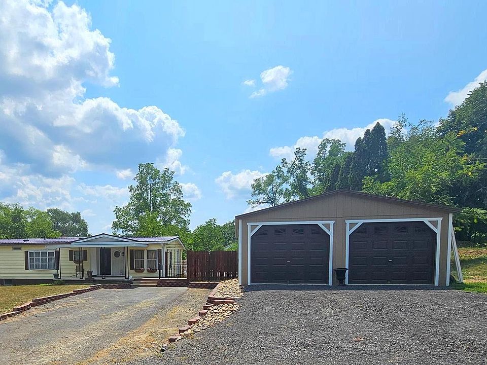 THIS IS NOT A MOBILE HOME. BRADDOCK ELECTRIC HAS BEEN CONTRACTED TO INSTALL A NEW PANEL BOX. HAVE YOU EVER WANTED TO LIVE CLOSE TO EVERYTHING BUT STILL FEEL LIKE YOU HAVE YOUR SECLUSION? ARE THESE HOT DAYS GETTING TO YOU AND YOU WISH YOU COULD WALK RIGHT OUT YOUR DOOR AND JUMP INTO YOUR OWN INGROUND POOL? DESIRING ONE LEVEL LIVING WITH MANY UPGRADES? WANT TO BUY A HOUSE THAT HAS YOU CAN JUST WALK IN THE DOOR AND UNPACK YOUR BELONGINGS AND NOT NEED TO DO ANYTHING ELSE? THEN THIS IS THE HOUSE FOR YOU! MAIN LEVEL LAUNDRY MEANS YOU DONT HAVE TO GO DOWNSTAIRS. THE LIVING ROOM FEATURES WOOD BEAMS ON CEILING, AND A STONE FIREPLACE THAT HAS NEW PROPANE FIRE LOGS , JUST REMODELED KITCHEN FEATURES SOFT CLOSE CUPBOARDS AND QUARTZ COUNTERTOPS, THE PRIMARY BEDROOM HAS A COMPLETELY REMODELED PRIMARY BATH WITH OVERSIZED WALK IN SHOWER AND LARGE CLOSET. THE MAIN BATH HAS ALSO BEEN REMODELED AND HAS A TUB/SHOWER COMBO. THE FENCED IN REAR YARD FEATURES AN INGROUND POOL WITH A BRAND NEW POOL LINER JUST INSTALLED LAST WEEK OF JULY. METAL ROOF AROUND A YEAR OLD, NEW DOUBLE CAR GARAGE ONLY ABOUT 6 MONTHS OLD . NEW FLOORING THROUGH OUT AND FRESHLY PAINTED INSIDE AND OUTSIDE. NEW TRIM AND THROUGHOUT AND A LOT OF THE PLUMBING HAS BEEN UPGRADED TO PEX. COME SIT ON THE FRONT PORCH AND SEE WHY YOU CAN ENJOY LIVING NEAR EVEYTHING BUT STILL FEEL LIKE YOU ARE IN YOUR OWN PIECE OF PRIVACY