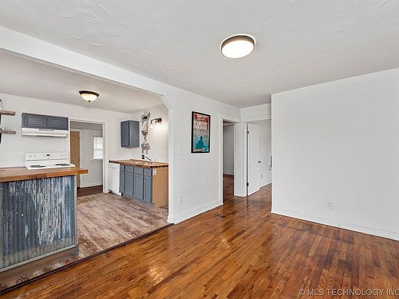 Perfect 2-bed 1-bath located 1.5 miles from Ft. Gibson Lake. This home has updated kitchen and bathroom with the desirable old hardwood floors!! House sits on 1 acre wooded lot with a pond in back.