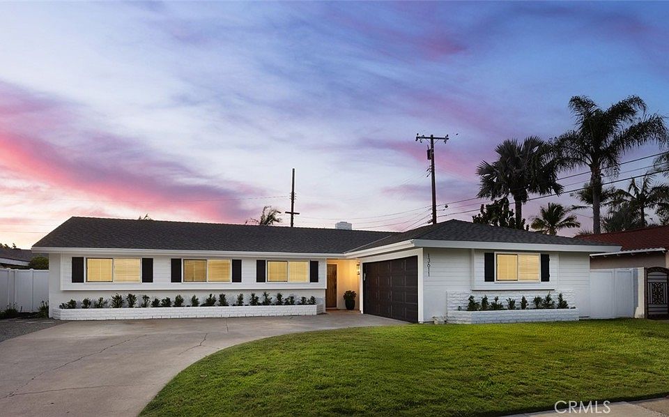 BRAND NEW MODERN DESIGN * SINGLE LEVEL HOME * FULLY REMODELED / TURNKEY * PRIVATE BACKYARD…Welcome to your dream home, a fully remodeled gem offering modern elegance and timeless comfort! This stunning residence has undergone a complete transformation, boasting top-tier upgrades completed in 2025. Step inside to discover a bright, open interior complemented by new exterior shutters and stylish exterior lighting. The heart of the home is the gourmet kitchen, featuring new GE stainless steel appliances, including a side-by-side fridge with water/ice dispenser, microwave, 5-burner electric range, and dishwasher. White Shaker cabinets, a soft brass apron sink, quartz countertops, and a sleek tile backsplash create a sophisticated space. The adjacent dining room dazzles with new sliders and a chic wood slat wall treatment. Relax in the inviting living room, showcasing new windows, a reimagined fireplace with fluted tile, black rock, and spheres, plus a dedicated TV outlet. Luxury laminate flooring and baseboards flow throughout, every room sparkles with new light fixtures, can lights, ceiling fans, outlets, and switches, all rewired for modern convenience. The primary bathroom is a spa-like retreat with an enlarged shower, bench seat, low-iron glass enclosure, porcelain tile, reeded wood vanity, quartz countertop, and brushed brass fixtures. The secondary bathroom impresses with a new tub/shower, low-iron glass door, fluted wood vanity with interior outlet, quartz countertop, matte black fixtures, and recessed brass medicine cabinets. Both bathrooms feature new lighting, exhaust fans, and designer ceiling-mount mirrors. Additional highlights include a whole-house repipe with PEX, a new A/C unit with all-new ducts, and a Carrier furnace in excellent condition. Enjoy new sliders in the primary bedroom, new windows in key areas, and a new front door with updated hardware and hinges throughout. The laundry room offers new upper White Shaker cabinets, and the garage features a new door opener with keypad. Outside, lush landscaping shines with reseeded, fertilized front and back yards, new mulch, and updated planter boxes. A new sprinkler control panel and repaired sprinklers ensure easy maintenance. This home blends modern upgrades with practical functionality. Move-in ready and meticulously crafted, this fully remodeled masterpiece is ready to welcome you home!