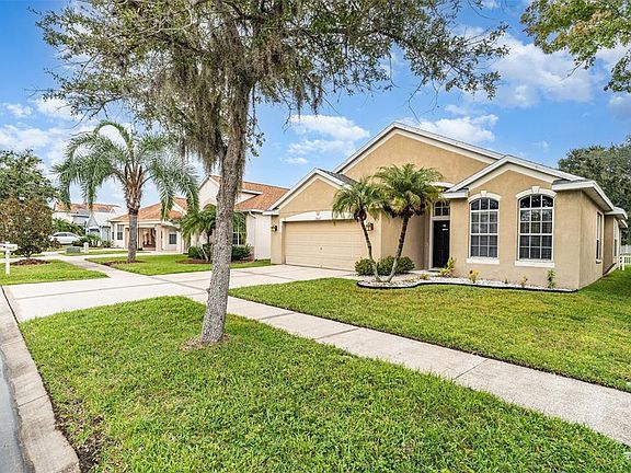 Discover this beautifully maintained 3-bedroom + Den, 2-bath, 2-car garage waterfront home, designed for comfort and style. LOW HOA and NO CDD fee!! 2018 ROOF, NEW HOT WATER HEATER, and NEW HVAC, giving you peace of mind for years to come. Step inside to an inviting open floor plan with a custom built-in feature in the living room and a split-bedroom layout that ensures privacy for all.The kitchen shines with stainless steel appliances, seamlessly connected to the dining and living spaces—ideal for entertaining. The versatile den is perfect for a home office, guest room, or playroom. Step outside to your private backyard oasis, complete with a classic white picket fence framing serene waterfront views—a picture-perfect setting for morning coffee or evening sunsets.This home is a rare combination of modern updates, charm, and tranquil living—ready to welcome its next chapter! $5000 concession towards flooring or closing costs.