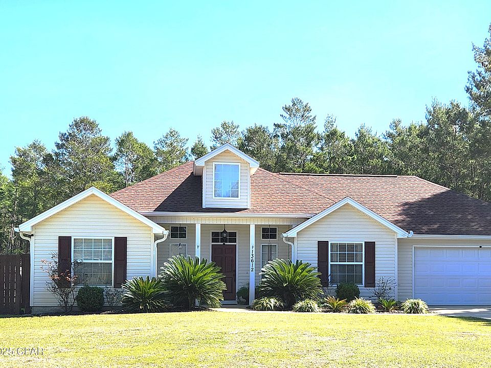 Country living with city conveniences! This spacious 3 bedroom/2 bath home features a split floor plan with a beautiful arched entry foyer leading into the living room that features a wall of windows. The eat-in kitchen has stainless steel appliances and ceramic tile flooring. The master bedroom has a tray ceiling, large walk-in closet, and attached master bath with double vanities. French doors lead from the living room to the very large backyard with expanded covered patio (17x28) perfect for entertaining. The large double gated fenced backyard has a building/workshop area just for your tools or crafts. The home also has a 2 car garage, water softener and irrigation system. ALL SIZES,AGES,MEASUREMENTS, SQ FT ARE APPROX. PLEASE VERIFY