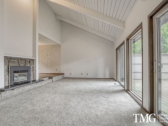 Entering on the main level of the condo you'll notice all of the natural light coming from the many large windows and sliding glass doors, each room has its own patio! The 2 upstairs bedrooms share a jack & jill bathroom with private shower and water closet. The sunk in living room boasts vaulted ceilings, a wet bar, and fireplace with wall-to-wall windows!!