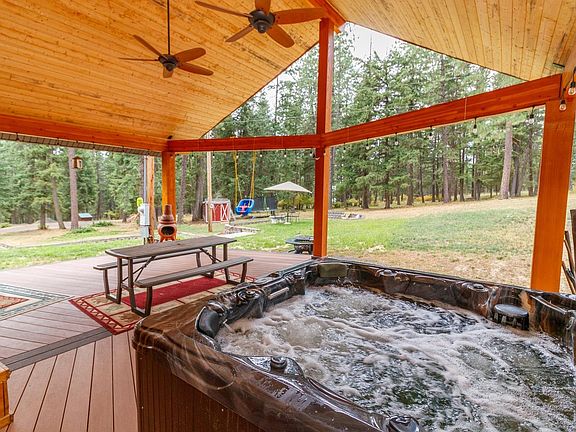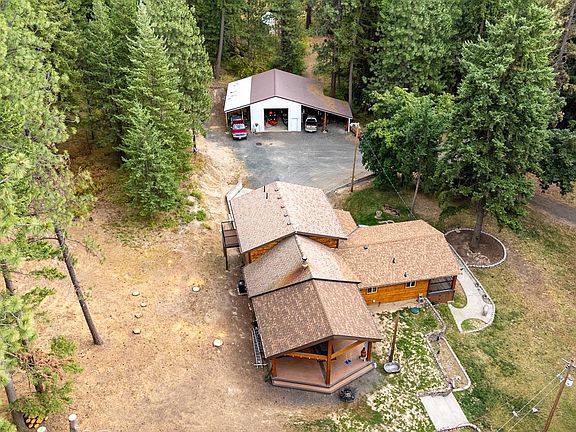 Imagine waking up in a lodge-style cedar home, surrounded by nearly 7 acres in the Mead School District, where every view feels like a getaway. Picture evenings under the stars from your hot tub on the large inviting deck, or hosting friends on the dining deck as nature surrounds you. With two covered decks facing south and west, outdoor living becomes part of daily life. Inside, vaulted tongue-and-groove ceilings frame a cozy fireplace and sliders to yet another covered deck. The main floor offers 2 bedrooms, a full bath, spacious kitchen, laundry, and formal dining. Upstairs, the primary suite boasts its own balcony, walk-in closet, and private bath. The 4th egress bedroom downstairs has access to the 4 car tandem garage —perfect for an office or the drummer in the family. With updated mechanicals, newer roof, and a 24x36 shop with 14-ft door plus lean-tos, you have space for projects, parking, and storage. Minutes from Greenbluff and shopping, this is where nature, comfort, and convenience meet.