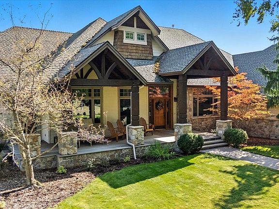 Located on over 10 spectacular acres behind the gates in exclusive Riverbluff Estates, the location + setting of this exquisite, custom Craftsman is private + serene, yet shopping, restaurants, St. George's School, the Little Spokane River Natural Area + Kalispel Golf + Country Club are only minutes away. Amenities include a beautiful open floor plan, generously appointed rooms, vaulted ceilings w/exposed beams, natural stone fireplaces + accents, spacious island kitchen, luxurious primary suite, sun room, fully finished lower level, private backyard space with patio, in-ground pool + hot tub, and room for a shop. Home comes equipped with all of the expected features of a home in this class, and the lower level could function easily for multi-generational living. This is a truly spectacular property!