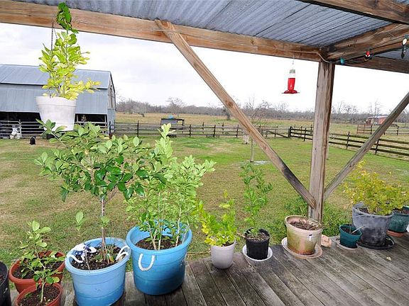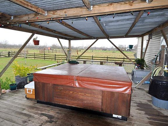 Spacious country home nestled on 9 acres. Large covered back patio, great for entertaining, hot tub stays. 9 acres currently being used for cattle. Land is Ag-Exempt. Barn, corral, chute, pond, completely fenced. Home has large kitchen, sep dining, living room with fireplace and bar area. HUGE master bed and bath. Seperate vanity areas, garden tub, large closet. Flood insurance not required. Peaceful living at its best!!