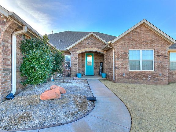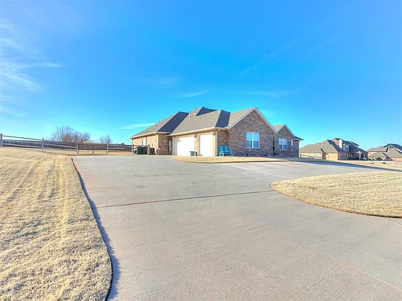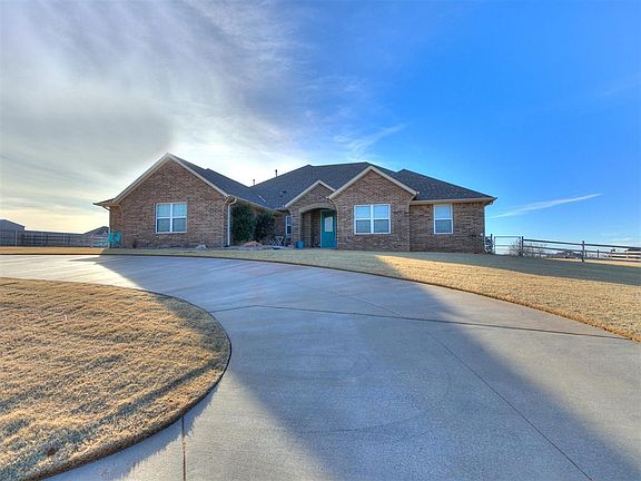 Stunning open floor plan in the sought after The Ridge Neighborhood! This home is a perfect combination of openness and warmth, for entertaining and everyday living. Split floor plan with four bedrooms, three full baths, and a large office/bonus room. Gorgeous finishes throughout, tons of natural light, and large flexible spaces. One acre corner lot with plenty of space to build a shop, pool, or both! Circle drive and three car garage has plenty of room for multiple vehicles. Home is equipped to handle any Oklahoma weather with a large in ground storm shelter, and a natural gas generator large enough to power the entire house that automatically switches on and off as needed. This wonderful neighborhood offers a community pool, park, basketball courts, and baseball field. Deer Creek schools.