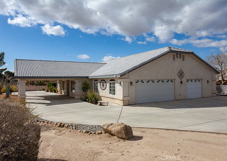 Welcome to your oasis in the desert! This beautifully maintained 4-bedroom, 3-bathroom home situated on a spacious corner lot offers the perfect blend of comfort and convenience. As you step onto the property, you'll be greeted by lush landscaping, including thriving fruit trees, a quaint chicken coop, adding to the charm of this desert retreat. For those with hobbies or storage needs, two generously sized sheds provide ample space to accommodate your tools, equipment, or outdoor gear. The professionally landscaped yard is a sight to behold, offering a tranquil sanctuary to unwind and entertain guests. RV and trailer enthusiasts will appreciate the convenience of not one, but two gated parking areas equipped with 220v power, water, and sewer hookups, making it easy to accommodate your recreational vehicles without sacrificing functionality or aesthetics. Embrace sustainable living with Tesla solar panels that keep the property cool during scorching summer months, while simultaneously reducing your carbon footprint and energy bills. Inside, the home boasts a fresh ambiance with new flooring and paint, creating a welcoming atmosphere for relaxation and entertainment. The open floor plan seamlessly integrates the living, dining, and kitchen areas, ideal for hosting gatherings or enjoying quality time with loved ones. Upgraded windows and doors flood the interior with natural light while enhancing energy efficiency and security. Plus, with the house wired for a whole-house speaker system, you can set the mood and enjoy your favorite music throughout the home with ease.