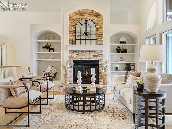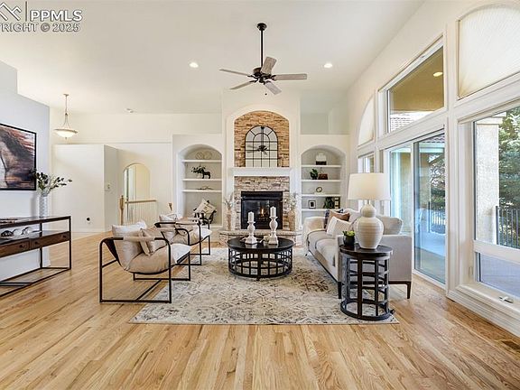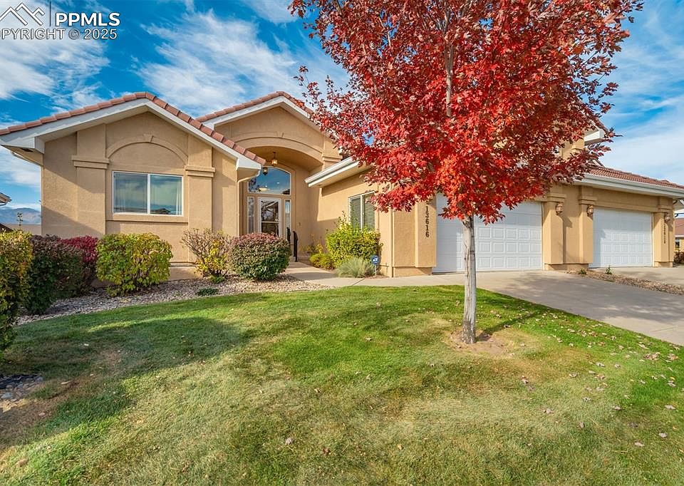 Beautifully maintained and sparkling with brand-new paint, upgraded carpet, and refinished hardwood floors, this move-in-ready ranch-style paired patio home in the gated enclave of Paradise Villas in Gleneagle offers the perfect blend of elegance, comfort, and low-maintenance living. Nestled within a boutique community celebrated for its mountain and USAFA views, manicured lawn spaces, and peaceful setting near Gleneagle’s trail system, this home invites a refined lock-and-leave lifestyle.The sprawling ranch design welcomes you with an inviting great room featuring 12-foot ceilings, a stone-accented gas fireplace, and abundant natural light opening to a covered deck flowing effortlessly from the living room—perfect for enjoying Colorado’s breathtaking sunsets. Designed for easy entertaining, the kitchen offers ample cabinetry, a breakfast bar, and a walk-in pantry, complemented by a separate dining area and main-level laundry with direct garage access.The primary suite is a serene retreat—framed by a mature pine outside the window, capturing the true spirit of Colorado living. The ensuite bath includes a five-piece layout with jetted tub and a spacious walk-in closet, while the secondary main-level bedroom doubles beautifully as a private office. The finished lower level extends the living space with a generous family room featuring a wet bar, a TV/media niche, and an additional bedroom plus flex room/office/fitness area connected by a full bath with split vanities—perfect for guests or multi-generational living. Lovingly cared for by its original owner, this timeless home combines refinement and practicality in one of Gleneagle’s most desirable gated communities, with parks, trails, award-winning D-20 schools, and quick access to I-25, Northgate, and Monument’s shopping and dining.