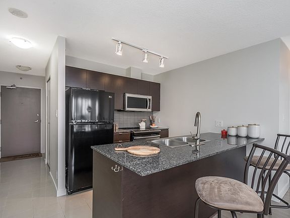 This spacious two bedroom, two bathroom home offers 912 square feet of modern living $14,000.00 Hunter Douglas blinds California Closet organizers New flooring and paint . Designed with both comfort and style in mind, the open-concept layout seamlessly connects the kitchen, dining, and living areas, creating an inviting atmosphere that’s perfect for everyday living or entertaining. Large windows fill the space with natural light, while the functional kitchen features sleek finishes and ample storage. Both bedrooms are generously sized, with the primary bedroom offering the privacy of an ensuite. A well-thought-out floor plan ensures optimal use of space, providing comfort and convenience for its residents. Set in a well-maintained concrete high-rise with amenities at your doorstep.