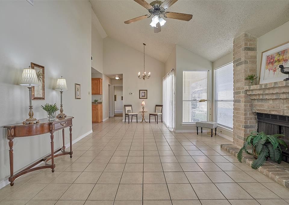 Cozy English Tutor ready for new owner. MANY UPDATES THROUGHOUT, MUST MAKE AN APPOINTMENT TO APPRECIATE. Open floor plan with high ceiling makes this home light and bright. The galley kitchen has been updated with new cabinets, appliances, cooktop. Makes this home easy entertaining with open floor plan! A real wood burning fireplace to enjoy on a cold night. Tile flooring in all main areas and NEW CARPETING IN THE BEDROOMS! The Master bedroom is very spacious and has its own access to the patio and backyard through the pair of french doors. Plus two separate closets in the master and NEW CABINETS in TAUPE color in both bathrooms. DID NOT FLOOD IN 2017 or HARVEY.
