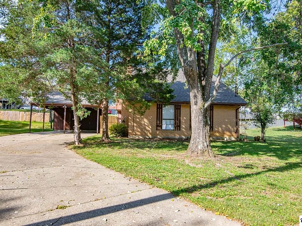 Charming 3 bedroom, 2 bathroom home with a unique layout in a quiet cul-de-sac! This beautifully updated home offers a distinctive floor plan with the entire upper level dedicated to a spacious primary suite-a private retreat that sets this home apart. The main level features laminate flooring throughout most spaces, fresh interior paint, and a cozy fireplace in the living room. Enjoy peace of mind with recent updates, including a new roof (Sept 2025), new toilets in each of the bathrooms, new carpet and padding for the upper level, to include new vinyl flooring in the primary bathroom. The water heater is only 2 years old and HVAC 6 years old. With mature trees and being situated in a cul-de-sac, this property offers a blend of privacy and convenience-perfect for comfortable living or entertaining. Don't miss this one-of-kind opportunity to own this beautifully unique home located just outside of Ft. Knox!