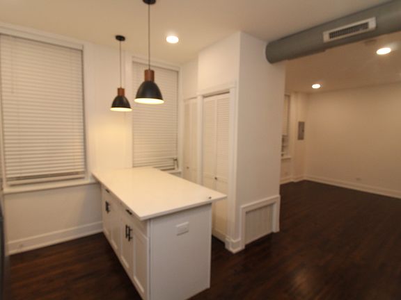 Fully Renovated apartment for rent in the Noble Square neighborhood. The apartment features a large open kitchen featuring quartz countertops. Large living areas with tall windows and hardwood floors, central heat and air. laundry in the unit. This apartment is in a great location, walk to everything. This space is conveniently located 1 lock from Jewel and the brand new Lowes shopping center. Also near boutique shopping, cafes, and many restaurants! The blue line train stop is about 2 blocks away. Pet negotiable with a $30 monthly pet rent There is a one-time move-in fee of $700.00. Available now. Tenants pays all utilities plus a $80 RUBS fee, which covers recycling, water, and trash removal.