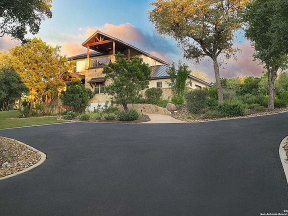 ** Open House next Sunday, 10/12 from 12 PM - 2 PM ** 4.375 % VA Assumable loan! San Antonio luxury meets Hill Country charm in this immaculate 3 bedroom, 2.5 bath home on 1.5 acres in gated Ridgeview Ranch. The stone and stucco exterior, standing seam roof, and private electric gate set the stage for elegance and privacy. Inside, hardwood floors, crown molding, and soaring ceilings frame an open layout with a dramatic floor-to-ceiling stone fireplace and walls of windows. The chef's kitchen features granite counters, custom cabinetry, subway tile backsplash, pendant lighting, breakfast bar seating, and a double butler's pantry. The downstairs primary suite offers patio access, tray ceiling, a spa bath with clawfoot tub, oversized tiled shower, dual vanities, and a walk-in closet with hidden safe. A secondary guest suite with custom shelving plus a private study that doubles as a guest room, flex space, or gym complete the main level. Upstairs includes two bedrooms, a full bath with dual sinks, and a spacious game room opening to a covered balcony with cedar beams and sweeping Hill Country views. Outdoor living includes a covered patio, hot tub pavilion, stone firepit lounge, and tiered gardens under mature oaks. Parking and storage abound with an attached side-entry 2-car garage and a detached finished garage/workshop with plumbing and oversized covered carport. Fully fenced, professionally landscaped with irrigation, Medina Valley ISD, and no city taxes-just 20 minutes to Loop 1604 and Lackland AFB.