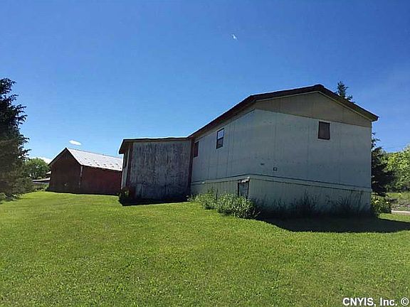 1988 Mobile home, 2 bedrooms, 2 baths is conveniently located for commuting to Norwich (12 miles) or Cortland (26 miles) or Cincinnatus (9 miles). Half acre lot with detached garage. Has a back enclosed storage porch. Built up- stick built pitched roof on trailer was done when purchased. Needs TLC - has great potential.