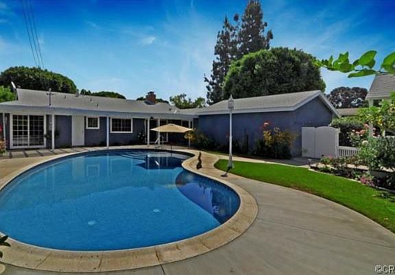 Absolutely delightful remodeled single level home on a corner lot and cul-de-sac is an entertainers delight! A tropical inspired paradise awaits behind the garden walls. Wonderful 3 bedroom and 2 bathroom home with beautifully landscaped grounds and sparkling pool. The original 4th bedroom has been converted into a family room with elegant French doors. The property is approximately 1,656 square feet on a 9,148 square foot lot. This charming home was built in 1962 and has been extensively remodeled and features stunning granite counters, double pane windows with Empire blinds, updated stainless steel appliances, tankless water heater and Pergo laminate floors. Plus a finished play house/studio/office in the back. Interior features include custom paint, crown molding and wainscoting. All closets have custom closet organizers. Two fireplaces with gas logs in the living room and dining room. No steps into or inside the home, wheelchair accessible. Keyless entry option on front door and roll up front door screen. The spacious yard also features orange, apple, lime and lemon trees and beautiful gardens. Plus a garden plot for growing your own vegetables. Very desirable Tustin neighborhood close to parks, schools, shopping and more. A real gem!