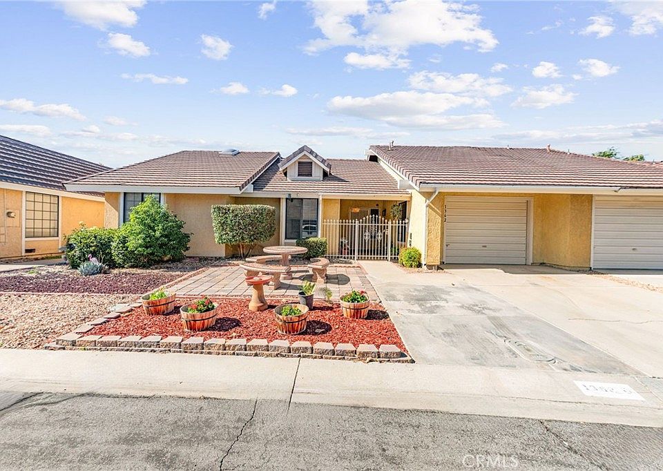 Adorable Single-Story Home in 55+ Community! Welcome to this charming 2-bedroom, 2-bath single-story home offering 1,106 sq. ft. of comfortable living in the desirable 55+ community of San Jacinto. This move-in-ready home features a brand-new roof, new AC unit, fresh interior paint, and new flooring throughout! The open floor plan creates a bright and inviting atmosphere, perfect for relaxing or entertaining. Enjoy a spacious living room, functional kitchen, and private backyard space ideal for morning coffee or gardening. Conveniently located near shopping, dining, and medical facilities — this home combines comfort, style, and peace of mind with all the recent updates already completed for you.