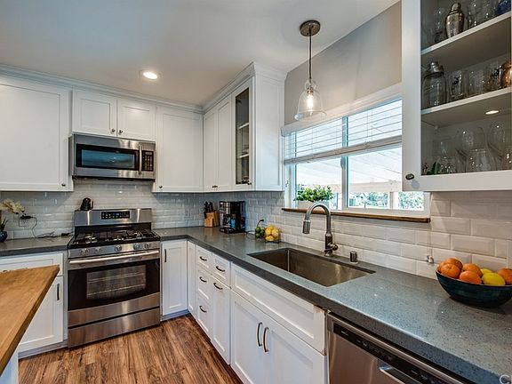 Totally OPEN FLOOR PLAN beauty thatâs incredibly upgraded & totally remodeled with a âChefâs Delightâ kitchen & âModel Homeâ bathrooms w/ an âEntertainerâs Dreamâ backyard & âParty Patioâ all anchored by a sparkling pool,all on a corner lot w/professional landscaping front & back! A âTo-Die-Forâ Kitchen w/ Quartz countertops,5 burner Samsung range,new elegant Glass Faced white cabinetry w/ lazy Susan & pull outs, center island with butcher block top,stainless steel Whirlpool dishwasher & Samsung microwave,all opening to âGreat Roomâ w/ dual glass slider.Crown molding,gorgeous laminate flooring,stackstone fireplace w/ wood mantle,dual pane vinyl windows,newer roof,copper plumbing,newer HVAC system w/ Nest control,new two panel doors,recessed lighting,extra tall baseboards,every plumbing fixture is new!BOTH baths have beautifully tiled walls with insets,brand-new vanities w/ upgraded fixtures & brand-new flooring! Huge laundry room w/ butcher block folding counter, extra utility cabinetry,crown molding,even has room for wine Fridge!Mirrored wardrobe sliders & lighted ceiling fans in all bedrooms.Curb Appeal is staggeringly attractive w/ a combination of âSucculent and Sweetâ (lush grass & inviting desert plants)professional landscaping w/ brand-new concrete walkway w/colorful flowers & palm trees lining entry walkway.Entertainer's Paradise covered patio gives that âindoor/outdoor livingâ option. HUGE Attic space in Garage w/pull down ladder!A Genuinely Beautiful Jewel.