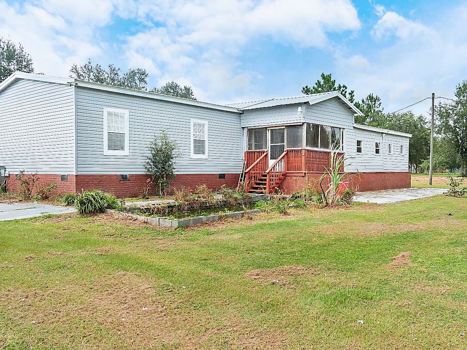 How does 4 bedrooms, 2 baths and 5 acres sound? This large 2002 sq foot manufactured home is waiting on you and all your ideas. Lots of room for your pets, garden or just roaming around. Plenty of oak trees to provide afternoon shade for some sweet tea drinking in the swing. Located only 7 miles from town with paved road frontage. Metal roof installed in 2020. With a little TLC this could be a stunning home for a first-time homebuyer with acreage to go with it. Master bedroom has an attached office/bonus room that could be a great nursery or dressing room. Beautiful yard with some producing fruit trees. The large enclosed front porch is an added bonus to the living area of the home.