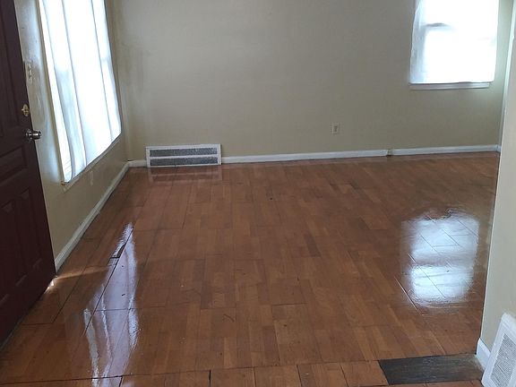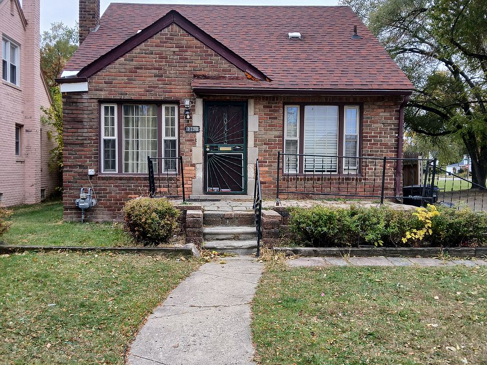 Cozy 3 bedroom, one bath brick bungalow in nice neighborhood. The home has 2 bed rooms downstairs and a large bedroom upstairs. It has a living room and dining room, hardwood floors, a clean painted full basement and a large fenced in backyard