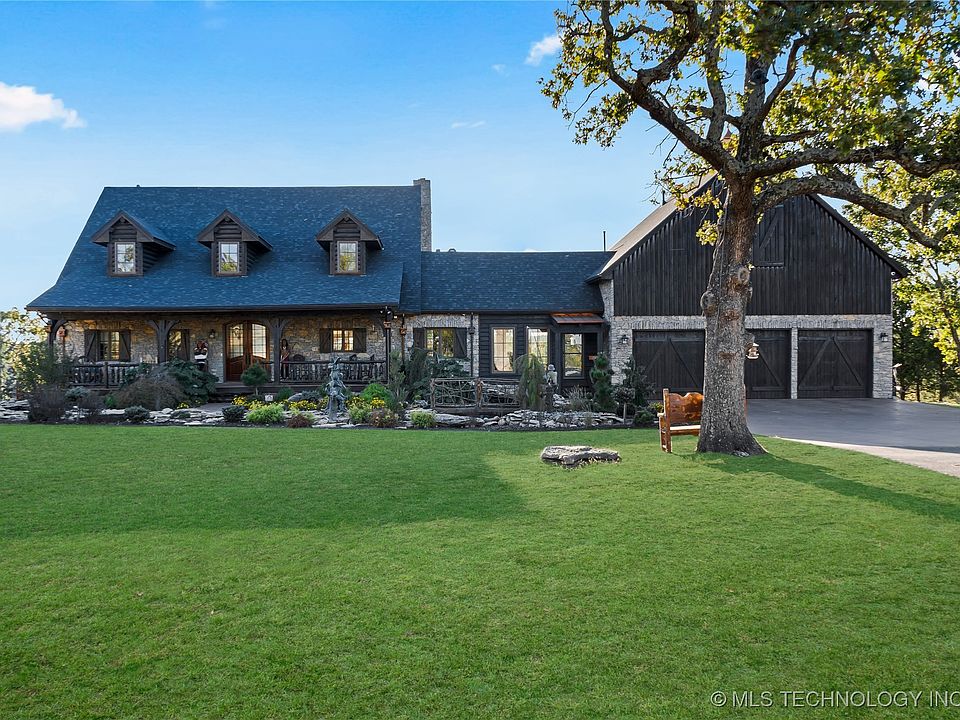 Where mountain lodge living meets refined luxury and Oklahoma serenity! Experience serene country living without sacrificing luxury in this stunning 4-bedroom, 4.5-bath estate, nestled on 20.08 acres within the Lone Star School District. Built in 2008 and thoughtfully updated, this three-story home blends timeless design with exceptional functionality.