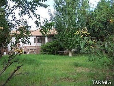 Surrounded by several mature trees. Large pine and Different fruit trees.