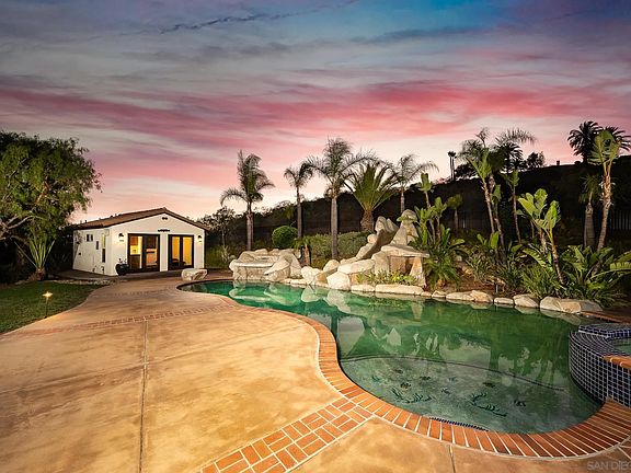 Pool and slidePrivate balconyFountain courtyardTree-lined driveCustom cabinetrySpacious family roomSoaring ceilings