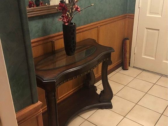 - All Bedrooms Down, Built-in Features, Ceiling Fan(s), Dining Area, Separate/Formal Dining Room, Double Vanity, Entrance Foyer, Jetted Tub, Primary Downstairs, MultipleDining Areas, Main Level Primary, Multiple Closets, None, Pull Down Attic Stairs, Split Bedrooms, Tub Shower, Natural Woodwork, Breakfast Bar, Custom Cabinets, Kitchen/Dining Combo, Solid Surface Counters