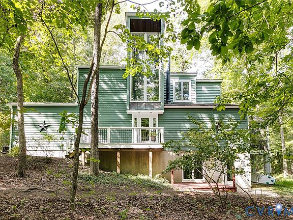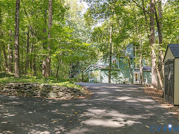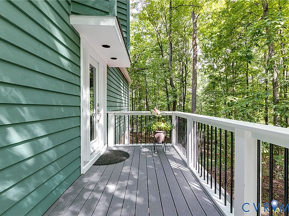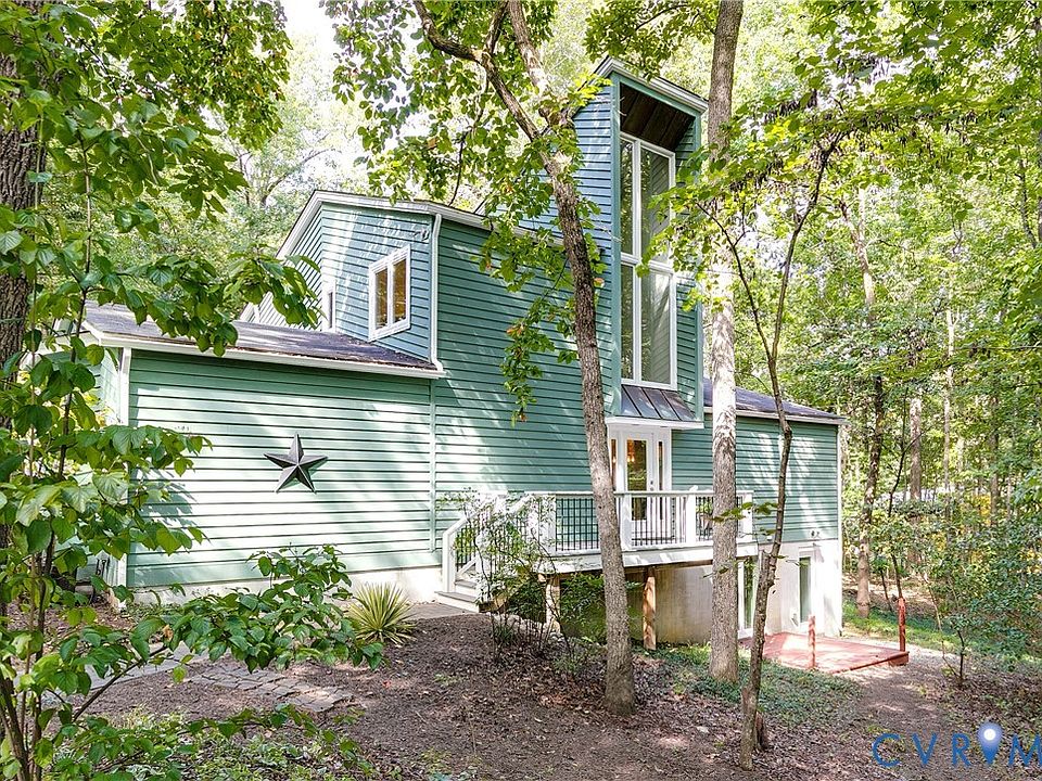 Welcome to your contemporary "treehouse" on 4 private acres with no HOA! A newly paved, tree-lined driveway with ample parking leads to this exceptional property. Step inside and be immediately struck by the open layout and abundant natural light streaming through expansive windows. The first floor is an entertainer's dream, featuring a seamless flow between the living room, dining area, and kitchen. The primary suite, a thoughtful addition, boasts beautiful windows with charming bench seating, a spacious walk-in closet, and an ensuite bath with a double vanity and a tiled walk-in shower. This level also includes a guest bedroom with easy access to a full bathroom featuring a tub. Enjoy the outdoors from the comfort of the screened-in porch overlooking the property. The second floor offers two additional bedrooms and a dedicated office, all with brand-new carpeting. A full bathroom with a shower, double vanity, and a huge closet completes this level. The walk-out basement provides versatile additional space, perfect for a playroom, workout room, or craft area. Laundry facilities are located on this floor, complete with a practical utility sink. The unfinished space is the ideal workshop, ready for all your projects. The fully fenced backyard offers ample room for outdoor enjoyment and privacy, while still being close to all the conveniences Midlothian has to offer, including restaurants, grocery stores, and easy access to interstates. Enjoy being close to Robious Landing park with it's trails, James River access and more!
