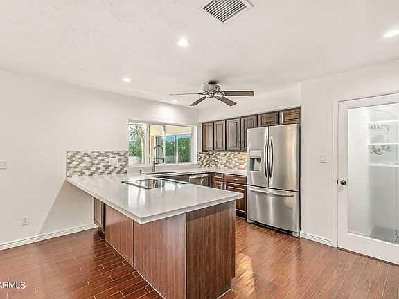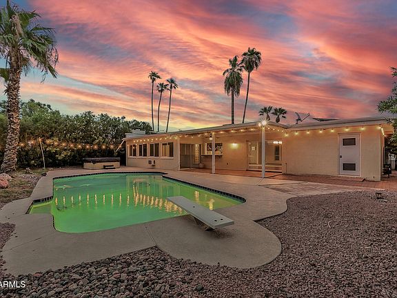 Welcome to the beautiful Cresta Del Oro, located in the Moon Valley area with soaring palm trees, mountain views, and extravagant sunsets. Mid Century style with 1,745 sq. ft of interior living space, 3 Bed + 2 Bath + 2 Car Garage, plus a sparkling pool and above-ground spa. Open concept main living area with a neutral color scheme throughout. Updated kitchen with great views outdoors, features Quartz countertops, rich contrasting cabinetry, stylish hexagon tile backsplash, stainless steel appliances, and a walk-in pantry with frosted doors. Step into your master suite with an updated master bath featuring a cool gray ceramic tile shower, plus a spacious walk-in closet with shelving and storage. 2 additional bedrooms and a full bathroom, plus a Bonus Room with/ fireplace, make a cozy sitting room or a private office. Step out back and take a deep breath, with a sparkling pool and spa, mountain views, mature landscaping, and a covered patio providing the perfect retreat or an entertainment space. Newer windows and leased solar. There truly is nothing to do except move in and live your absolute best life. Neighborhood mountain views, close proximity to Moon Valley Country Club, Gold Key Racquet Club, hiking, dining, entertainment, freeway access, and health care.