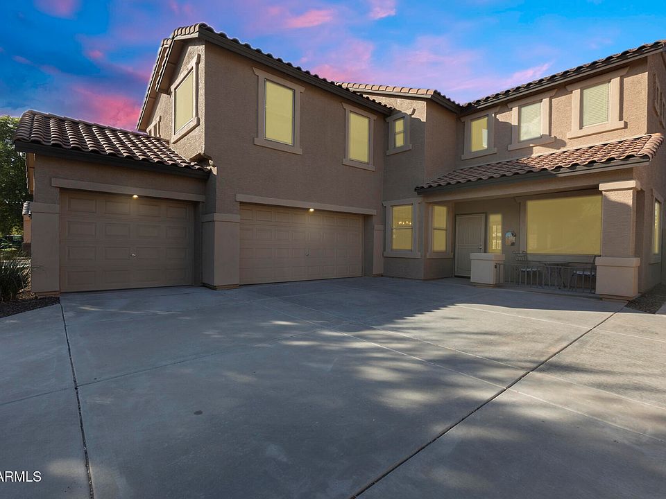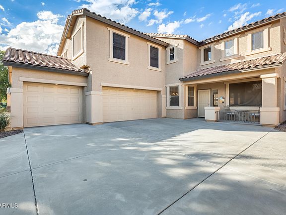 Discover space, style, and comfort in this beautifully renovated 4-bedroom, 2.5-bath home with an office, loft, and 3-car garage, offering 2,950 sq. ft. of living space. Featuring lovely curb appeal and a prime location, this home impresses from the moment you arrive. Inside, enjoy formal living and dining rooms, a large eat-in kitchen with an island, and an open family room perfect for gatherings. The primary suite offers a separate shower and tub plus a spacious walk-in closet. Outside, relax or entertain in your private backyard oasis complete with a covered patio, BBQ area, gas firepit and play area! The pool (approx. 6 years old) and dual 4-ton Trane AC units (2019) add lasting value and comfort. Enjoy a welcoming community with basketball and sand volleyball courts, playgrounds, and easy access to Loop 303, Loop 101, shopping, restaurants, libraries, spring training facilities, and more!