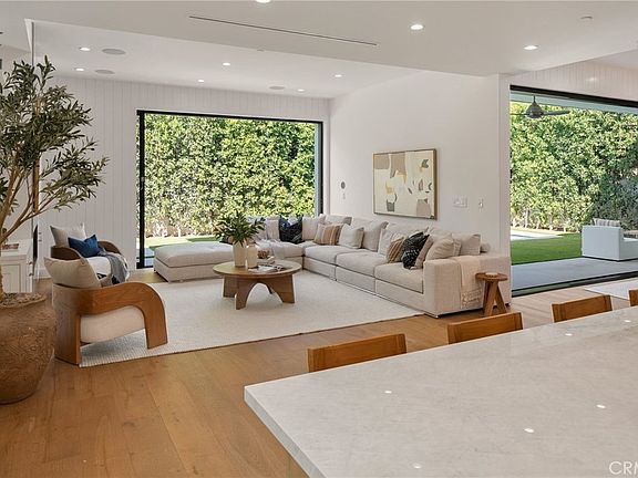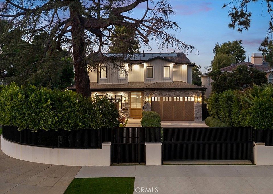 Nestled in the coveted Chandler Estates neighborhood of Sherman Oaks, this newer construction home sits on a gated corner lot, strategically setback from the street to create a private oasis. Designed for modern living, the spacious open-concept main level is anchored by a show-stopping chef’s kitchen equipped with top-of-the-line JennAir appliances and a massive island with seating. Floor-to-ceiling sliding glass doors in both the living room and formal dining room open seamlessly to the backyard, effortlessly extending your living space outside. Step outside to a serene retreat surrounded by mature privacy hedges and highlighted by a heated pool/spa, plus a built-in BBQ with bar seating – the ideal space to entertain or unwind after a long day. The gated front yard also impresses with a built-in fire pit and putting green. Upstairs, four generously sized ensuite bedrooms ensure everyone has their own private retreat, while a dedicated laundry room offers convenience. The sophisticated primary suite features a private balcony, custom walk-in closet and spa-inspired bathroom, complete with a soaking tub, oversized rainfall shower and double vanity. Additional highlights include a main-level ensuite bedroom, high ceilings throughout, water softener system, reverse osmosis with instant hot water and added alkaline, a two-car garage with an EV charger outlet and smart home system with built-in speakers, security cameras, a Nest thermostat and more. Ideally located just moments from Westfield Fashion Square, Ventura Boulevard’s premier shopping and dining, and top private schools including Notre Dame, Harvard-Westlake, and Campbell Hall.