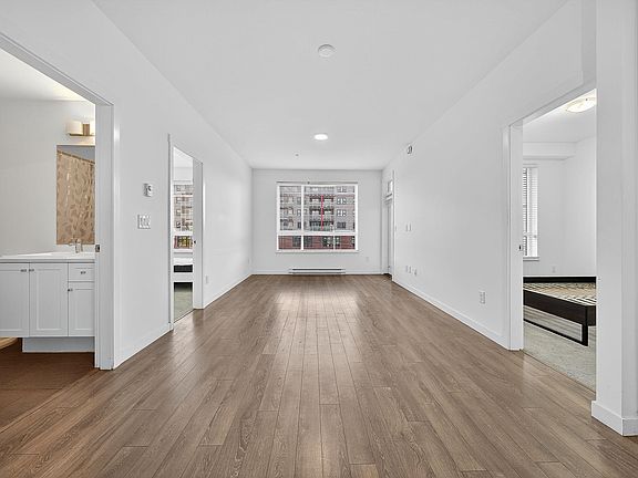 Bright open floor planSleek white kitchenQuartz countertopsLarge islandHigh-end stainless steel appliancesSpacious primary bedroomWalk-in closet