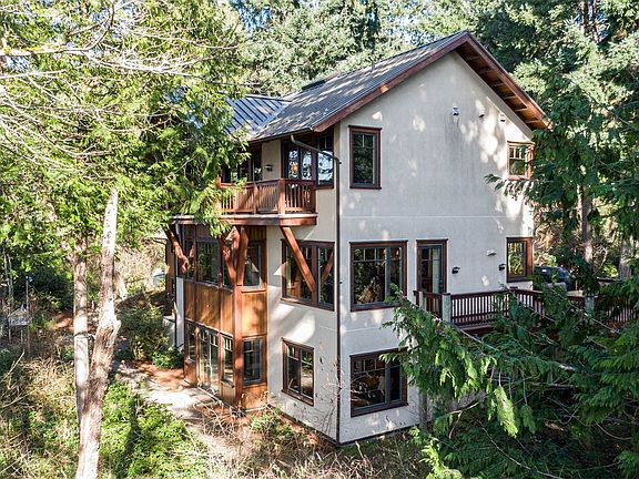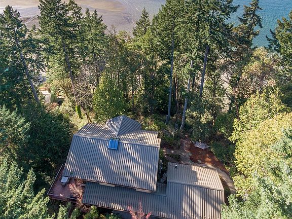This finely crafted, contemporary residence on Vashon Island’s treasured western shore offers sunset views over Colvos Passage. The 3-acre property hosts a high-bank vantage point, easy forested footpath to the 200’ of bulkheaded waterfront, and tiny A-frame at the shore. Enjoy beach-walks, kayaking, and serenity just 5 minutes from the Seattle ferry. Welcoming for entertaining, a generous open plan living, dining, kitchen and deck are on the main. Two primary suites: one on the upper level, the other in the lower daylight level, make for gracious living in this 4-bedroom 3.25 bath home. The 2-car garage has a lower-level studio/shop with doors out to the garden. Perfect privacy and elegant landscaping define this rare, legacy, property.