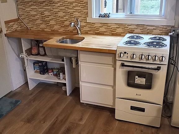 property is perfect for your weekend retreat. The “tiny home” cabin features a delightful living
