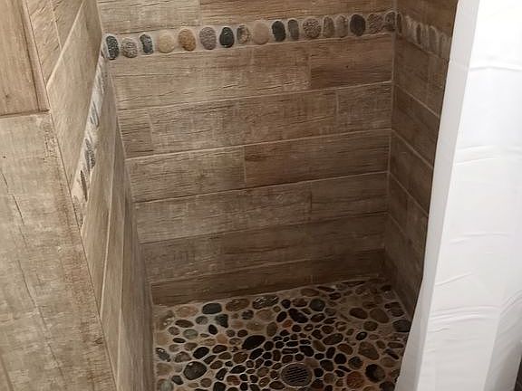 area,full service kitchen,a beautiful custom shower made with stones from Lake
