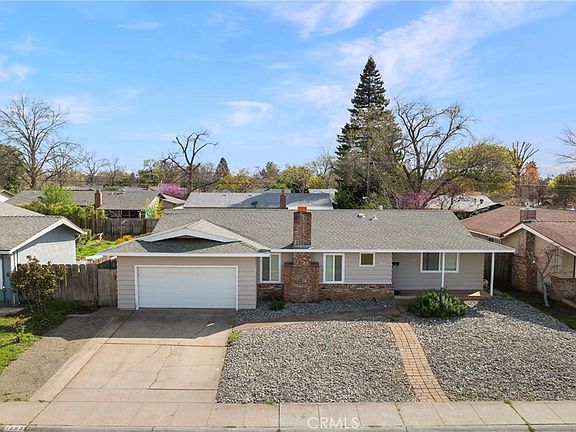This move-in ready home is situated in a fantastic North Chico neighborhood walking distance to Pleasant Valley High School, Marigold Elementary, and the East Avenue Marketplace which conveniently offers local eateries and grocery! You will also appreciate being a short bike ride to upper Bidwell Park! When you drive up to this home you will appreciate the low maintenance landscaping and freshly painted exterior! Step through the front doors where you will find a freshly painted interior with new carpet, new tile flooring, new light fixtures, new doors, new dual pane windows with window coverings, newer HVAC system (1 year old), brand new water heater, an updated kitchen with stainless steel appliances, and a sliding glass door off the dining area that looks out to the blank slate backyard for all your future gardening goals! The bathroom has also been updated with a new vanity sink and new light fixtures. Through the sliding glass door you will appreciate the brand newly constructed covered patio. Despite the backyard being a blank canvas, there are established fruit trees lining the right side including cherry, meyer lemon, and mandarin! The generously sized 2 car garage has an attic access for extra attic storage and this space reaches the attic of the entire home. The garage is also completely finished with sheet rock and fresh paint. A washer and dryer hookup with both 220v and gas hookups for your dryer are conveniently located in the garage. Another added bonus is having all the plumbing centralized in the garage allowing for a second bathroom addition. A door off the living area could also be added to accommodate interior access to a hypothetical second bathroom! This house is totally turn key and waiting for you to call it a home!