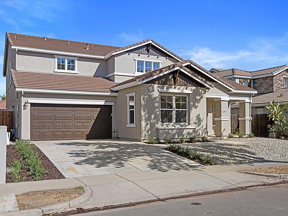 Large two-story home located in the desirable small town of Patterson. Fresh interior/exterior paint as well as new simulated wood flooring & carpeting throughout! This home features 4 bedrooms, open loft that can easily be converted to a 5th bedroom and 3.5 bathrooms. Downstairs there is junior primary suite with private full bathroom. Powder room off of the main hallway. Formal living room with French Doors as you enter. Formal dining room with chandelier that also has French Doors leading to a side patio perfect for outdoor dining. At the back of the home, you have the large kitchen that opens to the family room giving you that Great Room feeling. Kitchen has eating bar, center island, double ovens, granite counters, breakfast nook, butler's pantry & massive walk-in pantry! Laundry room has built in cabinets & sink. Upstairs you will find a total of 3 bedrooms including the primary suite & the open loft. Hallway full bathroom has a shower over tub & double sink vanity. The primary suite is impressive in size & comes with dual vanities, soaking tub, shower stall & over-sized walk-in closet! Attached 3 car tandem garage for plenty of storage. Low maintenance & drought tolerant landscaping include custom laid brick patio in backyard. This home is move in ready & a must see!