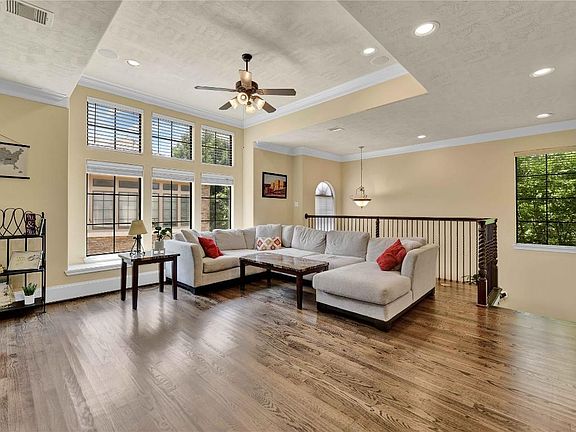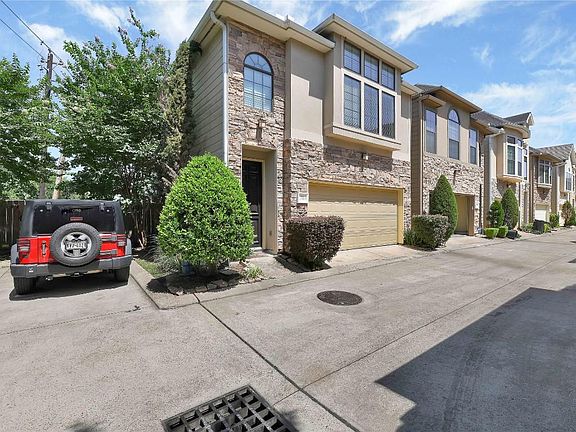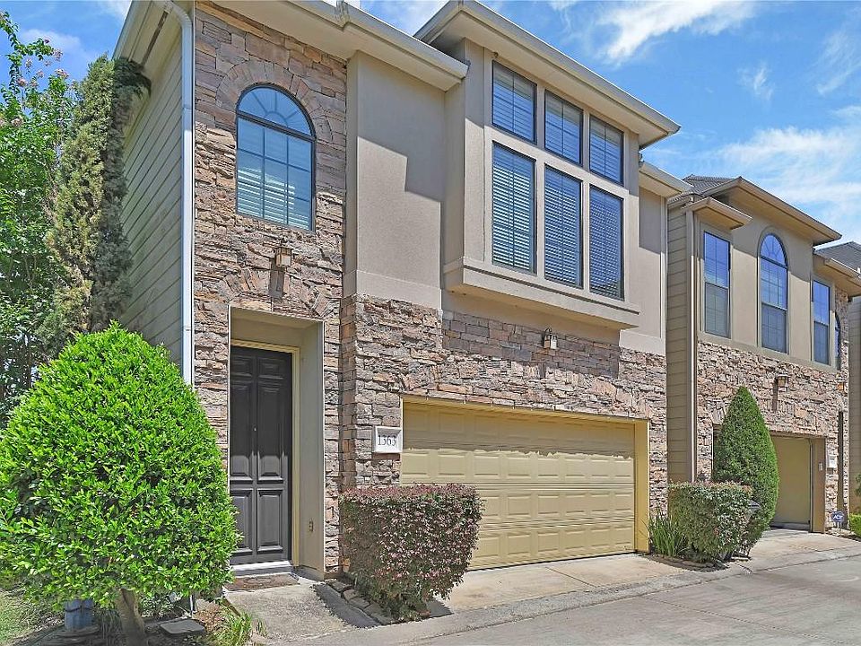 Contemporary corner home in gated community adorned with custom finishes, walking distance to Memorial Park. Light and bright airy floor plan, prewired for sound system. Spacious living with tray ceilings, crown molding and dining area connect seamlessly for a smooth flow when entertaining. Open kitchen with tile backsplash & granite counters, SS appliances, double sink, bar area & wine chiller. Primary suite and ensuite bath with 2nd bedroom down with private sitting area/den. Beautiful wood floors throughout. Primary bath offers double sinks, separate shower, granite counters, tile floor and deep soaker tub. Downstairs offers secondary bedroom and bath with separate den and laundry room. Outside has a nice patio w/ yard area with sprinkler system and gas grill. 2 car attached garage. NEW AC UNIT! As an end unit, it has easy access to extra parking for guests. Perfect city living - walking distance to park, shops and restaurants!