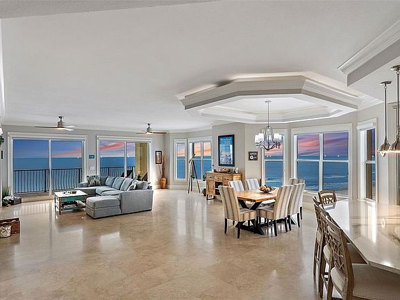 Welcome to Heaven—Bellarte 700C, the Pinnacle of Gulf Front Luxury Living! Perched atop one of the most coveted addresses on Florida’s Gulf Coast, this full-floor penthouse residence redefines coastal luxury. From the moment you step off the private elevator into your exclusive foyer, you’re greeted by panoramic, 180-degree views stretching from the shimmering blue waters of the Gulf to the dazzling skyline of downtown St. Pete. Bathed in natural light from every direction, the open-concept living area is designed for both elegant entertaining and everyday comfort. The gourmet kitchen is a showpiece, featuring custom solid-wood cabinetry, quartz countertops, premium stainless steel appliances, and gas cooking. A generous peninsula offers casual seating and flows seamlessly into the dining and great room, which open onto the 45-foot Gulf-front balcony—the perfect setting for sunset cocktails and al fresco dining. The primary suite is a private retreat, complete with direct balcony access, hand-scraped hardwood flooring, and a spa-inspired bath featuring an oversized walk-in shower, soaking tub, and dual vanities. A split floor plan ensures privacy for family and guests, with two additional bedrooms offering their own ensuite baths and breathtaking views of both the Gulf and Intracoastal Waterway. A versatile den provides the flexibility for a home office, gym, theater, or fourth bedroom. Additional luxuries include two more sunrise balconies, a beautifully updated powder bath, and a well-equipped laundry room. On the ground level, enjoy the convenience of a private two-car garage and a dedicated beachfront cabana—perfect for storing all your seaside essentials. Residents of Bellarte indulge in resort-style amenities, including a clubhouse with a full kitchen and entertaining space, a fitness center and sauna, and a heated Gulf-front pool surrounded by tropical landscaping. Located in the heart of Madeira Beach, you’re just minutes from John’s Pass Village, fine dining, boutique shopping, and the vibrant arts and culture of Downtown St. Petersburg. This is more than a home—it’s an experience of refined coastal living at its absolute finest. Schedule your private showing today and claim your penthouse in the sky before it’s gone.