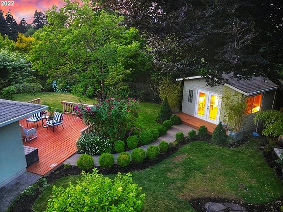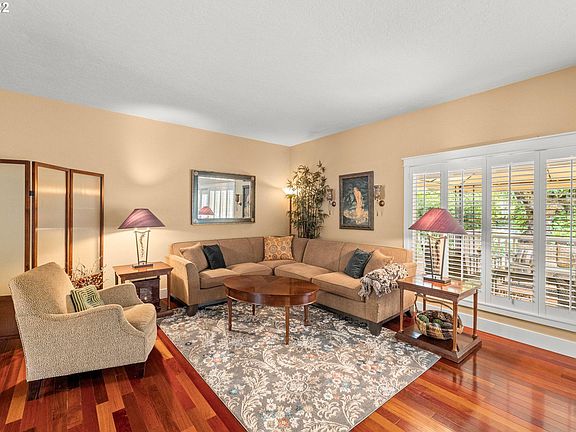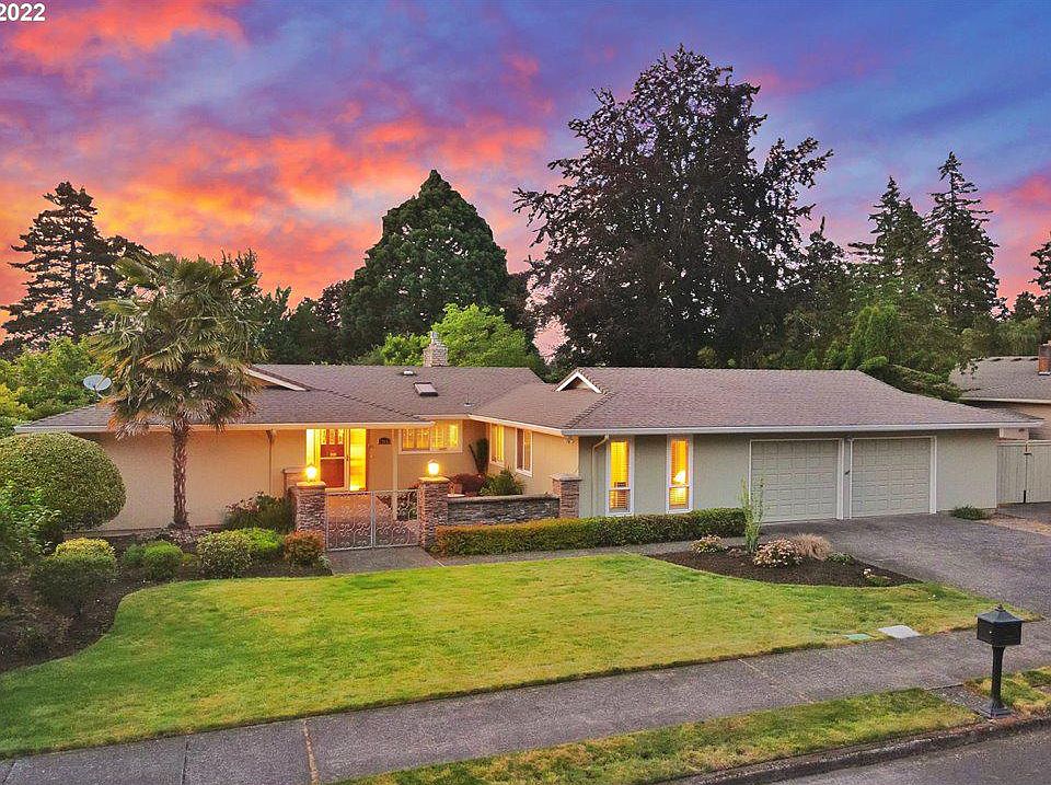 Rare one level home with a captivating detached ADU! Gated courtyard. Desirable split wing floor-plan. Kitchen w/ double oven, granite, gas cooktop & SS appl. Hardwood floors, gas F/P, central A/C & Milgard windows. Primary suite w/ French doors that lead to the backyard deck. A truly magical oasis awaits you in the private lushly landscaped fenced grounds. The ADU includes a bath & kitchenette. Garage includes EV charging, xtra storage & a workshop. RV parking. Prime Regency Park location! [Home Energy Score = 1. HES Report at https://rpt.greenbuildingregistry.com/hes/OR10203100]