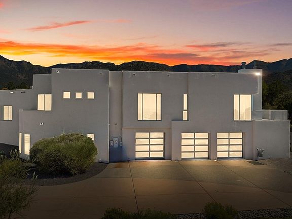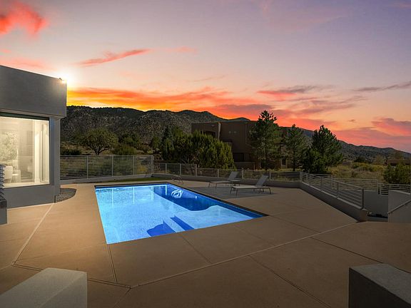 High Desert Elegance with Unmatched Views!Perched on a rare 1.08-acre High Desert Estate Lot, this stunning home has been completely upgraded with the finest finishes and meticulous attention to detail. From custom luxury cabinetry in every room to fully remodeled bathrooms and closets, every space has been thoughtfully designed.Enjoy breathtaking Sandia Mountain and city light views from nearly every window. The open floor plan showcases Italian polished tile flooring throughout, while an abundance of natural light highlights the home's modern elegance.Step outside to a spacious yard with a sparkling swimming pool, perfect for entertaining or simply soaking in the beauty of the high desert landscape. The home also features owned solar panels for energy efficiency.Offering 5 bedrooms