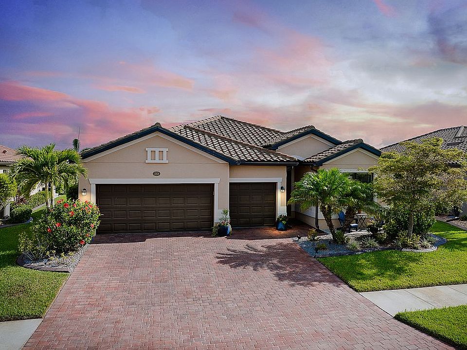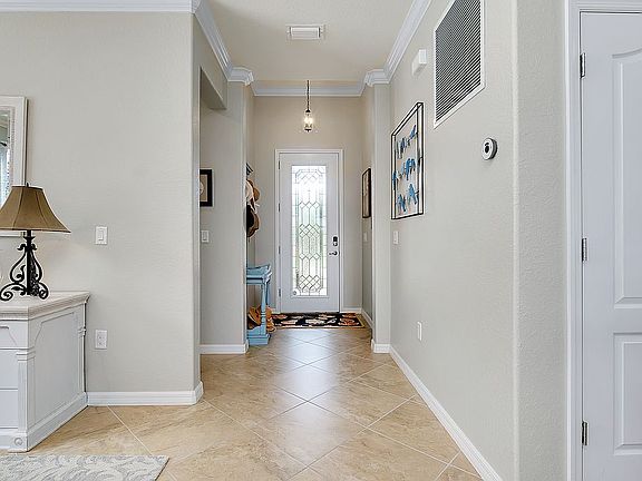 This exclusive gated community, Gran Paradiso, offers amenities others can't compare to. There's a resort style saltwater pool, hot tub, steam and sauna rooms, fitness room, pickleball, tennis and so many activities whether yoga or cards is your thing. This home is meticulously maintained and boasts many upgrades like vinyl planking in the bedrooms, fresh paint in a neutral color, upgraded appliances, and so much more. Stately crown moldings are abundant in most rooms. The open floor plan is perfect for entertaining or just enjoying the serene setting overlooking the water and conservation area. The community is all built out so NO annoying construction to put up with. The kitchen is enormous as well as the master closet, challenging you to fill the space. The HOA covers internet, mowing, fertilizing and irrigation (although it is currently off) so is quite a value combined with the amenities offered. If you can bring yourself to leave the community, the beaches are close by and I75 is just minutes away. Wellen Park offers many activities such as music and more walking paths and is just across 41. Don't miss this opportunity! Call to schedule your private tour today.