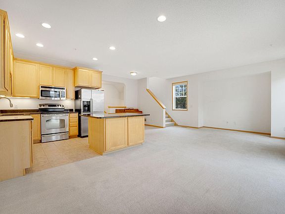 End unit townhome in the highly desired Harmony Community! Move-in ready and surrounded by beautiful green space and walking paths. The welcoming entry leads you into a bright and spacious open floor plan. The kitchen features granite countertops, stainless steel appliances, and plenty of cabinet space/counter space. The dining room has a sliding door leading to the deck. Upstairs has two generous bedrooms, full bathroom, and laundry. You will enjoy having access to all the amazing community amenities—including a pool, playground, parks, and fitness center. Located within award-winning District 196 schools, this home has it all!