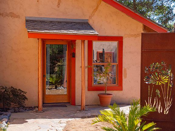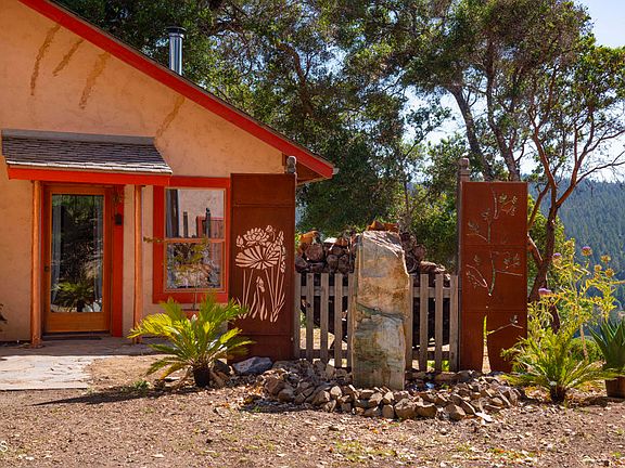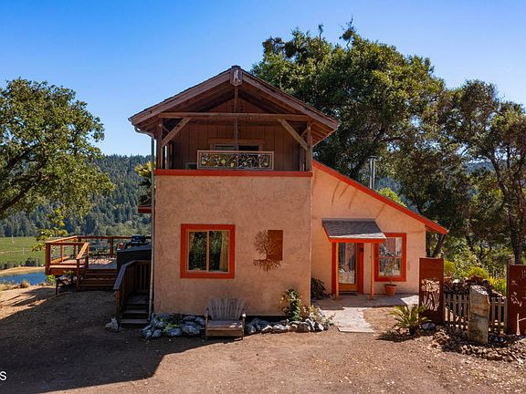 Set atop a hillside in the Heart of Anderson Valley--literally, this Mediterranean-style home with its earthy exterior color offers a vivid contrast to its surrounding foliage and landscape. The main entry gives way to a casual but elegant living room with vaulted ceilings, stained concrete flooring and a wood burning stove. One side of living room opens to the dining and additional living area that flows seamlessly to the outdoor porch. The kitchen and staircase leading to the upper level are also connected to the living room through an ached doorway. In addition, the main level offers a spacious bedroom, a bathroom and a second porch. From nearly every window, you'll see layered gardens and distant valley and hillside views. The upstairs ensuite includes a bedroom, a bathroom with soaking tub framed by windows offering stunning views of the valley below, an office, and an outdoor open room. This home embodies the indoor-outdoor lifestyle.Set apart from the main house is a detached two-story casita. The ground level is a flexible open space--ideal for guests, a creative studio, or a peaceful retreat. Above, is a private studio apartment with an internal and an external access.Only minutes from downtown Boonville, yet worlds away in feel, this exceptional wine country retreat is a rare opportunity to live in a space that is both cultivated and wild.