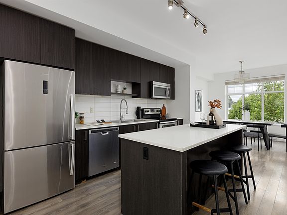 Priced close to $100,000 BELOW ASSESSED! Welcome to this gorgeous 4 bed 2.5 bath classic shingle style townhome. Conveniently located close to Surrey Central Mall, Transit, and vast green park space. This gorgeous open space living is connected to the gourmet kitchen offering an hug quartz island, stainless steel appliances, and expansive 9 ft ceilings with a powder room. A ground floor bedroom which can be used an office or bedroom. This townhome comes with two parking!